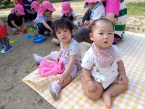 シートの上で様子を伺う0歳児さんたち。