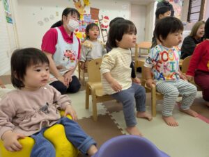 風船が膨らむ様子に、不思議そうな子どもたちでした!