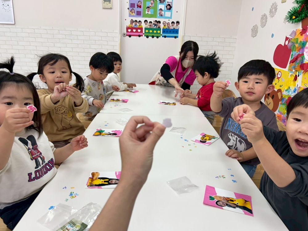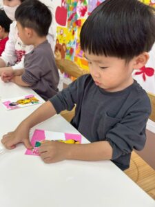 パーツを一つずつ渡していくと、上手に貼っていました✨