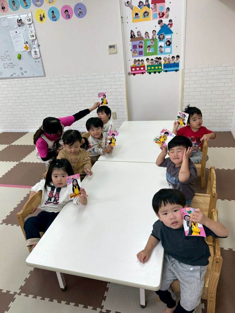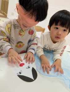 きょうは、2歳児さんが年賀状の文字を貼ってくれました!