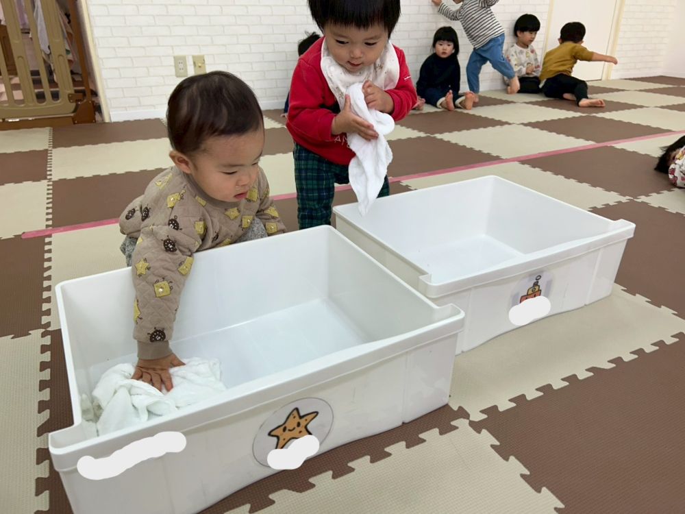 1歳児さんも、保育士の説明をしっかり聞いていたことが分かるぐらい上手に、雑巾を使いこなし✨