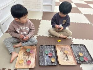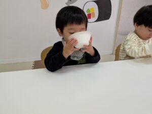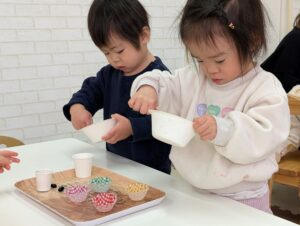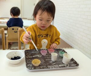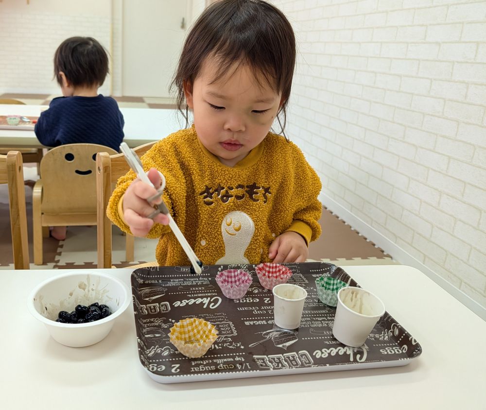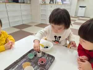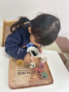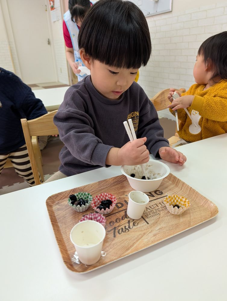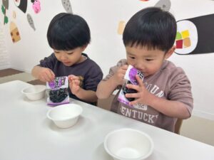 食べようとする子や、手で移すなど色んな楽しみ方が見られました😊