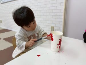 絵の具の色をどっちにするか聞いてみると、勢いよく「こっち!」「あか!!」と各々好きな色を選んでいて可愛かったです🎵