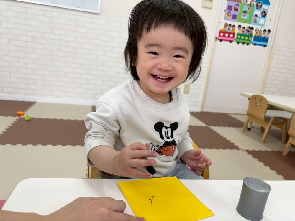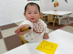 0歳児さんもクレヨンや絵の具の筆に興味津々な様子で、とっても楽しそうに取り組んでいました💕