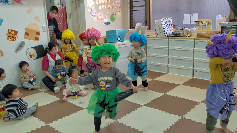 2歳児さんが、カラフルな鬼になって登場🌟