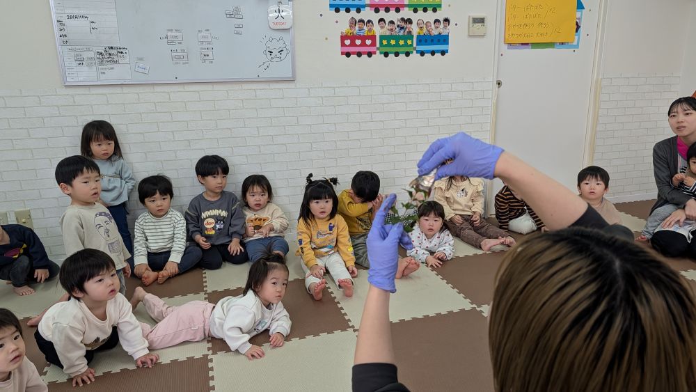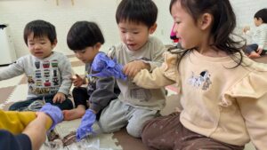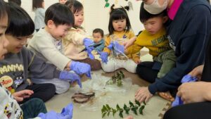 2歳児さんは、手袋をしてイワシに触れてみましたよ🐟