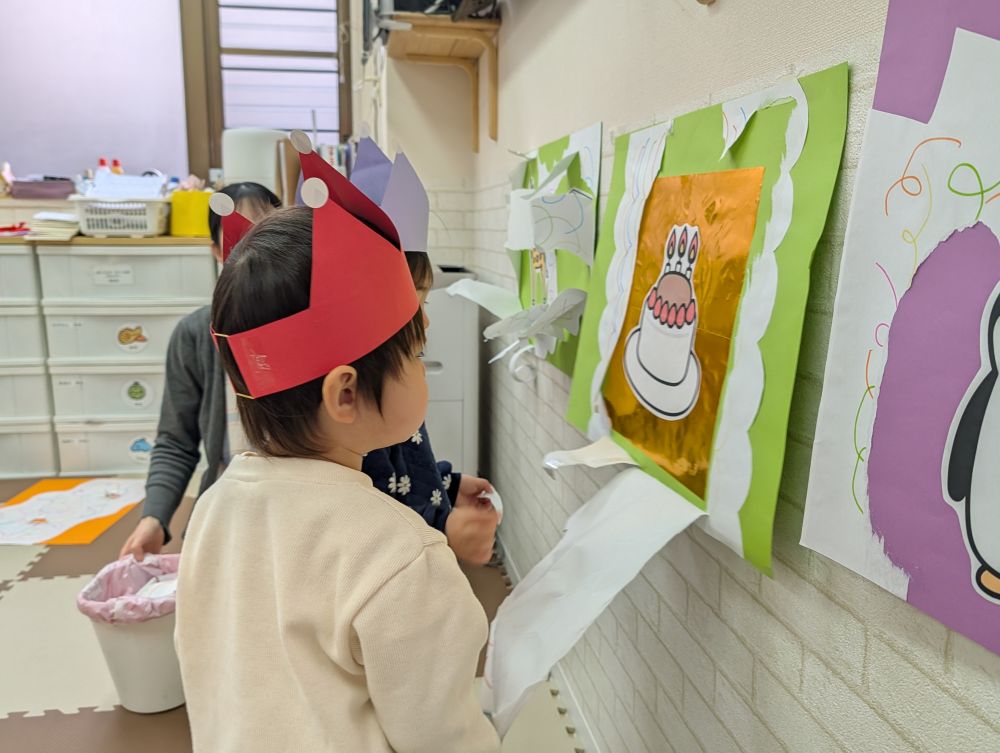 保育士が見本で破いてみると、興味津々な子どもたち…👀✨