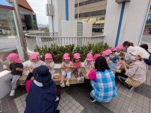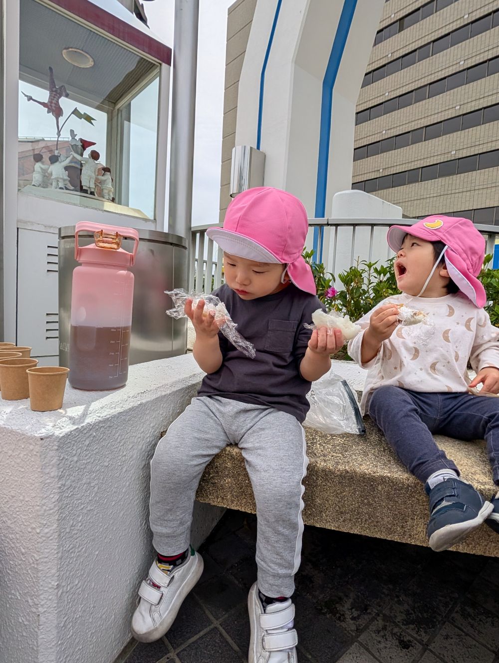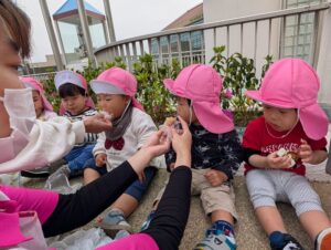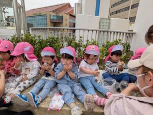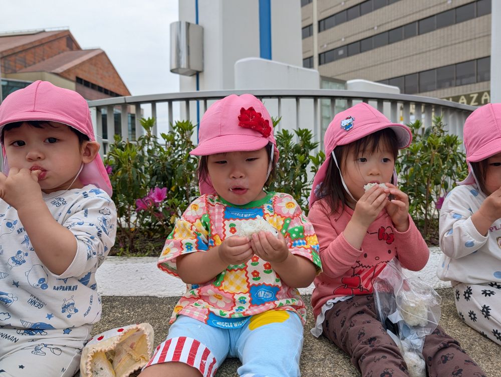 お天気が良かったので外に出ておにぎりを 食べました! 皆大きな口を開けて美味しそうに ほおばっていました😆✨